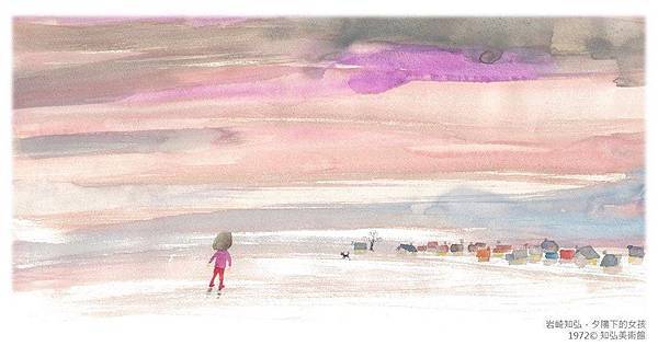 夕陽下的女孩。繪本《下雪天的生日》主角是一個快要過生日的小女孩,這幅畫是書中一景。主角小女孩在朋友的生日宴會上出糗,當場奪門而出,她悲傷沮喪的心情,映照在冬日天空的晚霞上。